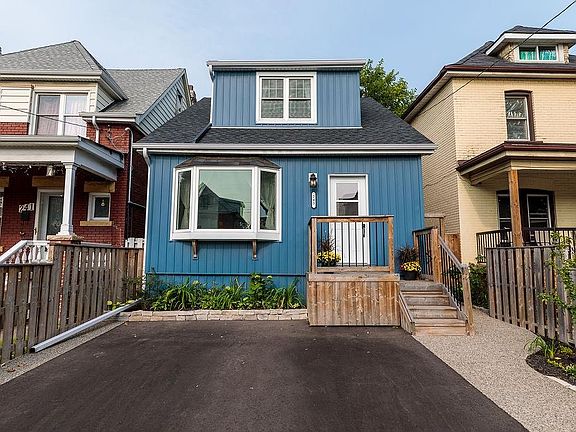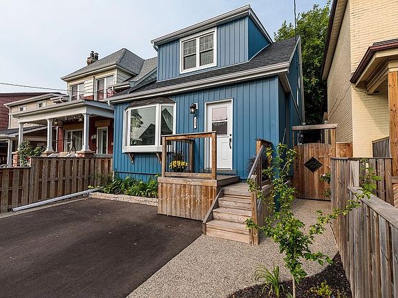 Lovingly renovated and located in the Crown Point community near Ottawa Street's shops and restaurants, antiques, textiles and Farmer's Market, Tim Horton's Stadium and Gage Park. This grassroots neighbourhood is fast becoming a popular Hamilton destination. The area is loaded with great resources for families: parks, schools, Kenilworth Library, EarlyOn Centres, Hamilton Children's Museum along with easy access to transit and social bicycles. Its current family has renovated front to back, top to bottom including the gleaming kitchen, upstairs and basement bathrooms, gas fireplace, flooring, laundry, windows, plumbing, wiring, staircase, back deck, front porch, back and front fences and gates, central air, appliances, siding, eaves, waterline replaced, fully landscaped backyard retreat with mature trees and irrigation system for both front and back gardens, gas line for the bbq, front driveway with exposed aggregate walkways, roof /eaves on detached garage. Side entrance to finished basement with roughed in kitchen, family room, home office, 3 piece bath and laundry. 2 car parking out front, 1 car parking in the rear. An absolute stunner!