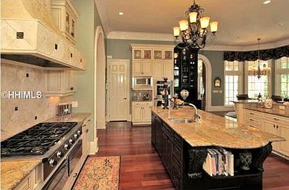 Spectacular custom built home with a Mediterranean flair in Belfair, a premiere private golf community located in the beautiful greater Hilton Head area of Bluffton, SC offers 5br/7ba w/ panoramic views of the golf course, Lake and private pool w/ spa. Beautifully crafted home w/ luxurious first floor MBR suite w/ his and her baths, huge chef's gourmet kitchen w/ custom cabinetry, granite counter tops, Sub-zero fridge, 2nd floor guest suite, tray ceilings, custom moldings, Brazilian cherry flr., gym, mediation garden, elevator, wine cellar and outdoor kitchen plus 15 min from beach, private beach pass (909112)