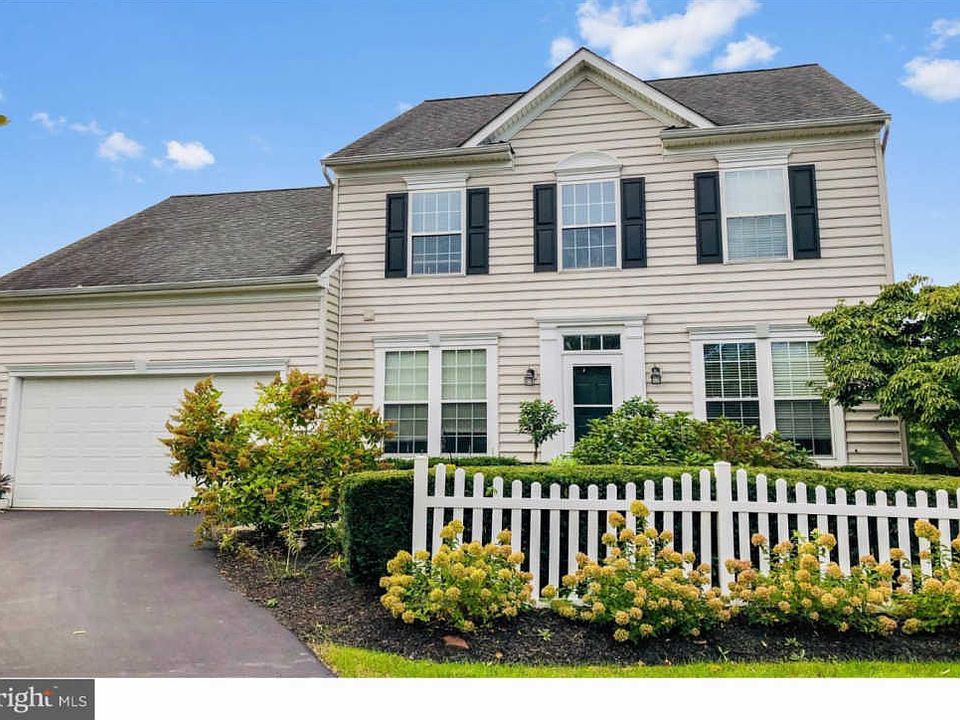 Don't miss this charming 4 bedroom/2.5 bathroom home located on the best lot in Bedminster Hunt?backing to 10 acres of open space! An impressive 2-story foyer greets guests at the front entry and leads to an open concept main floor. Featuring hardwood flooring & custom crown molding throughout, the main level boasts a spacious dining area with tray ceiling; office with French doors and built-in book shelves/cabinetry; modern half bathroom; living room with gas fireplace; breakfast room with rear exit sliding doors and a gourmet kitchen enhanced with upgraded 42" cabinetry, granite counter tops, stainless steel appliances (brand new dishwasher) & center island. Upstairs, the spacious main bedroom suite includes a tray ceiling, walk-in closet and full bathroom with large jetted soaking tub and shower. A second full bathroom and 3 well-appointed additional bedrooms complete the second floor. A full finished basement, with brand new sump pump, expands the functionality of the interior living space and features brand new carpeting, an impressive wet bar area and plumbing roughed in for a full bathroom. Outside, an expansive and low-maintenance composite deck overlooks the rear yard and acres of open space. New heating system, hot water heater & washer. Great access to rt. 313 & rt. 113. Book your showing before this special property is gone!