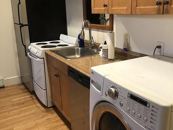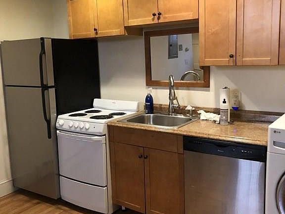 No Broker Fee! Renovated studio with it's own private entrance. This unit features updated appliances including a dishwasher and in-unit washer/dryer combo. Hardwood floors, exposed brick and 2 closets for storage. Heat and hot water are included in rent. No pets. Students welcome with co-signer. Video tour available upon request.
