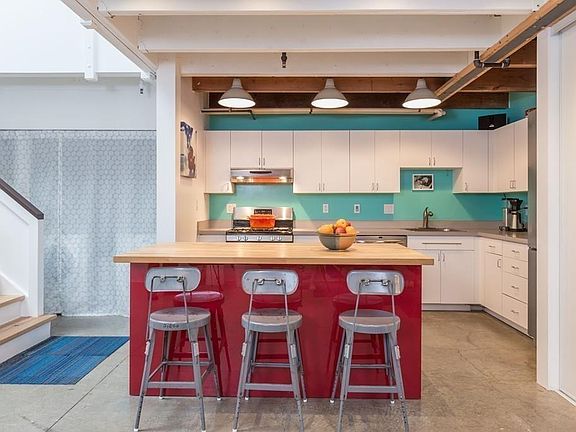 - KIT_DSCRP: Stainless Steel Appliances, Kitchen Island, Ceiling - Beamed, Gas Stove