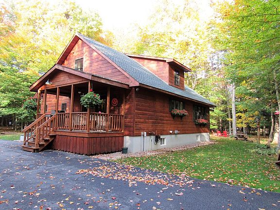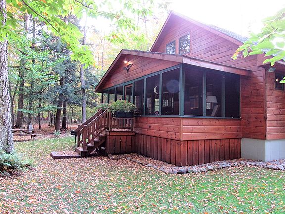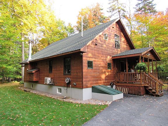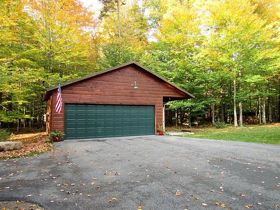 SIMPLY THE BEST OF EVERYTHING - Inviting year round Eagle Bay home on 2 wooded acres. 2010 Custom build by Beauchamp Builders features a large loft, 3 BR (after 1 egress window is installed) 2 bath, hardwood floors, knotty pine, quartz counter tops , large screen porch, finished basement, and 2 spacious garages (1 is drive thru). Open living/dining/kitchen with cathedral ceiling and stone fireplace. Easy trail access.