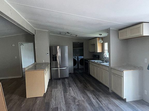 A white 4 bedroom/2 bath vinyl siding mobile home (cement foundation). This property is newly renovated including fully renovated master bathroom including new vanity and shower; fully renovated kitchen including new cabinets, flooring and countertops; new windows throughout the home, new front doors, new flooring, new HV A/C unit (2022) and fresh paint throughout home. The roof was recently fully replaced and renovated in 2019. Includes a laundry room with back entrance and two other spacious decks. All new appliances throughout home (refrigerator, stove and washer/dryer).