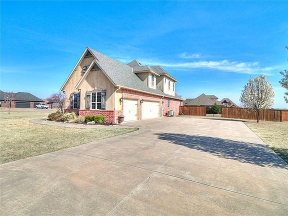 This beautiful home on 3/4 acre corner lot is only 5 min. south of Norman. Stunning woodwork & iron details make this house special! The huge great room features a beamed cathedral ceiling and a fireplace surrounded by built ins. The open concept living and kitchen offers a breakfast bar, a built in desk, a pantry & stainless steel appliances! The wall of windows in the living allow for natural light to flow in! There are 3 upstairs bedrooms plus a unfinished storage room! There are 2 full baths upstairs! The backyard is phenomenal with lots of space to play, a covered back patio with walkway to the arbor patio and nice landscape and the 3 car side entry garage makes for great curb appeal with plenty of parking space! in-ground storm shelter in garage. NEW ROOF JUNE 2017