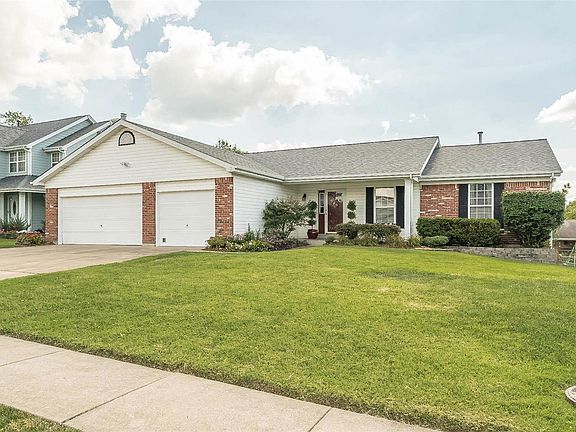 Beautiful ranch in desirable Francis Howell School District! This 3 bedroom Open Concept Ranch, 2.5 bathroom home features many updates including a new deck (2018), roof (2018), hardwood floors (2016), stainless steel appliances (2020), refrigerator to stay, and remodeled hall/primary baths (2022). The covered back deck is the perfect place for relaxing or entertaining. The 3 car garage gives you plenty of space to for storage or DIY projects! Head inside to the main floor laundry and kitchen with lots of counter/cabinet space. Down the hall from the vaulted ceiling living room is a full bath and 3 bedrooms. The 2022 spa-like primary bath is a dream with marble flooring, 32in vanity, soaking tub, and a large double shower. The walkout basement includes a large family room and 1/2 bath for added living space! Head outside to the fenced-in yard and a concrete patio; great for an outdoor firepit!