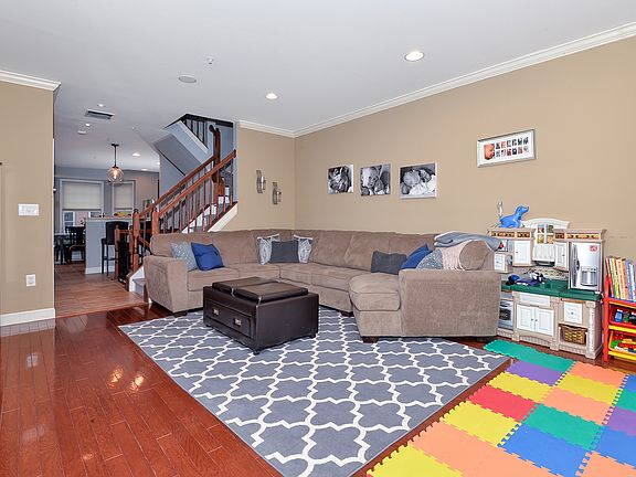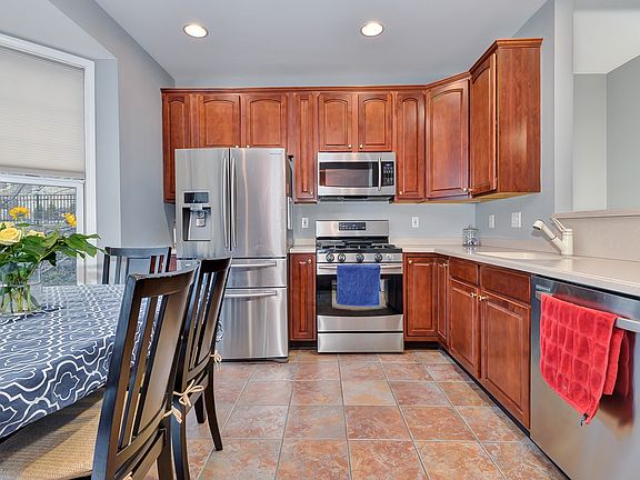 Jacob's Ferry end unit Fanwood. Extra side windows. Flooded with light. Renovated full bath and fireplace on first floor bedroom. Upgraded loft level bedroom. Crown molding. Custom painted. Hardwood floors. 42 inch Cherry cabinets, Corian counters, new stainless steel appliances and custom tile flooring in kitchen. Upgraded storage systems. New LED recessed lighting and Nest thermostats for energy efficiency. Central vacuum. Surround sound. Alarm. Parking for two cars; one in private garage and one in driveway. Community boasts two outdoor pools with jacuzzis, tot lot, waterfront promenade and free shuttle to Ferry and Light Rail. Steps to 158 bus to NYC. Close to restaurants and shopping.