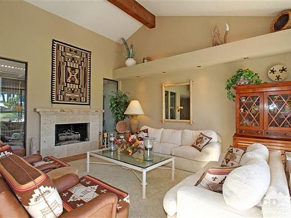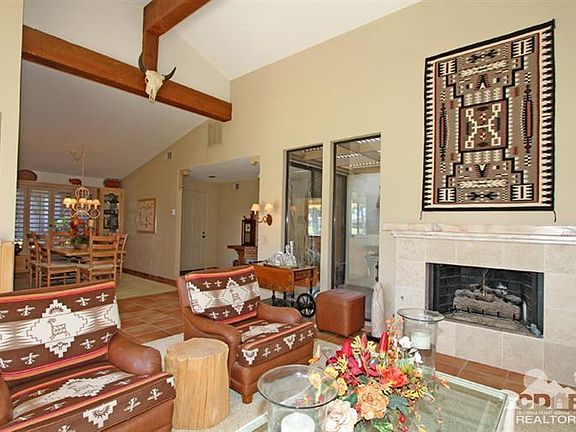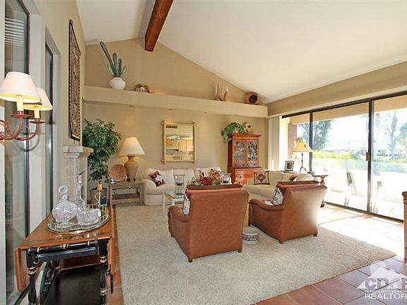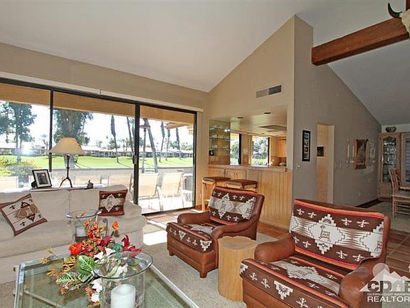 Just Reduced! This rarely available Monterey Country Club 3000 Max features two bedrooms plus a spacious den/office and three ensuite baths plus a powder room. Located on one of the community's most coveted streets, this beautiful unit enjoys panoramic southern mountain, golf and lake views. The updated kitchen his been opened to the great room and features newer appliances and a gas cooktop. Traffic areas are paved with Saltillo tile and the Southwestern theme continues throughout the home. The extended, enclosed and tiled patio offers sunny views and you'll have a ringside seat for Palm Desert's Independence Day celebration! The unit's den/office can easily be converted to a third bedroom. Two of Monterey's 37 community pools are just steps away. Most furnishings are available outside of escrow. Monterey Country Club features 27 holes of championship golf, pickleball, tennis, fitness center, pro shops and full service clubhouse.....all available to homeowners with NO initiation fee!