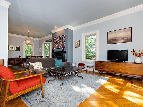 A unique 3 bedroom 2 bath townhouse condo in a renovated Itallinate Manse that feels like a single-family but with the benefits from the common association. High on a bluff off of Chestnut Ave, the secluded leafy grounds are both private and easily accessible to the heart JP. The grand living room opens into the large dining room accented with bay windows, custom built-in seating, gas fireplace, and inlaid hardwood floors. The kitchen was gut renovated in 2015 and the major systems of HVAC were done at the same time. On the second floor are two large bedrooms sharing an oversized bathroom with full laundry. Off to the side is a built-in library. The top floor suite is a wide room of deep plush carpet and high vaulted ceilings with bright skylights. The master bath also renovated in 2015 is a showpiece with steam shower, soaking tub and Japanese Hi-tech toilet. The building is surrounded by decks and a verdant park-like common garden, parking for two and storage in the basement.