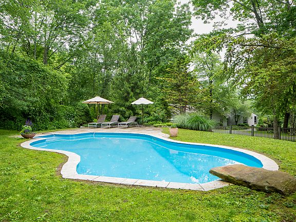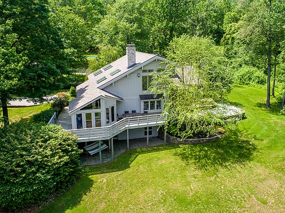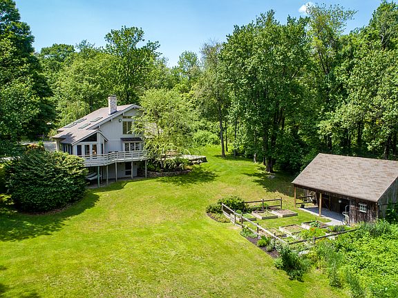 Nestled on a serene country road, this updated, passive solar, contemporary home will captivate you with its warm appeal accented by walls of windows, sun-filled rooms and casual living spaces. Relish the open floor plan with a cook's kitchen that includes a breakfast bar and breathtaking views of the fruit trees and grounds; the dining room with beautiful cherry floors and plenty of built in cabinets for storage; the great room with a lovely stone fireplace and enjoy the outside within the three-season room. Retreat to the first-floor master bedroom suite with hardwood flooring and French doors. The spacious master bath features dual sinks, Jacuzzi tub and stall shower. The warm and comfortable living room features exposed wood beams, carpeting and plenty of bookshelves. A half bath and mud room complete the first floor. The modern staircase takes you to the upper level that features a wall of bookshelves, a guest bedroom suite with hardwood flooring and dual closets and another bedroom with a half bath. The lower level features an exercise room; laundry space; full bath with steam shower and bedroom with walk out to the patio. Situated on 15.47 acres, this lovely property includes a three-stall horse barn, magical gardens, fruit trees, in-ground pool and 3-car carport with electrical charger for your car. A truly unique property.