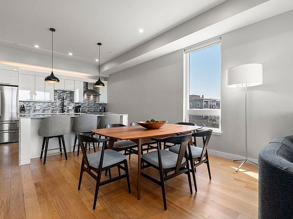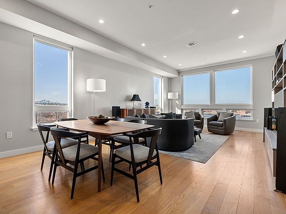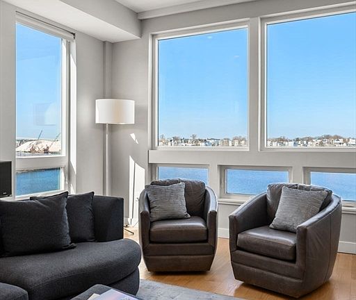 Modern living meets breathtaking water views in this exceptional penthouse. Offering just under 1,400 sqft of living space, this 2 bedroom, 2 bath residence features soaring 10' ceilings and expansive windows showcasing sweeping ocean views. The open-concept layout is designed to highlight space and frame the breathtaking vistas, creating a serene backdrop for any occasion. The gourmet kitchen boasts high-end appliances, sleek countertops, and custom cabinetry. The private roof deck is the ideal space for relaxing or entertaining, complete with a gas line for added convenience. Both bedrooms offer generous space and ample storage, while the primary suite includes an en-suite bathroom with exquisite finishes. Indoor garage parking adds convenience, and local dining, shopping, and the Blue Line T station are just minutes away. This penthouse offers the perfect blend of modern luxury and urban convenience, making it a truly exceptional place to call home.