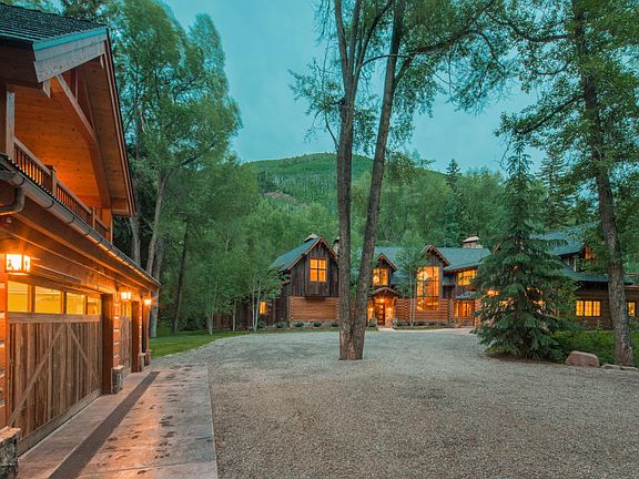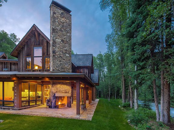 VIEW NEW VIDEO UNDER PHOTOS TAB! This unique property on Castle Creek has the perfect combination of beauty, privacy & convenience. Located less than 5 miles from downtown Aspen: one of the most scenic drives in North America. This new modern log home features a main house w/5 generously sized bedrooms, each with a unique view of the river. Entire south & west sides of main floor have glass walls and doors uniting the inside & outside spaces. Open floor plan with the living, dining, kitchen & family areas flowing together. Special features include large sun room off the kitchen, custom walk-in pantry, Mozambique cabinetry, custom bar area, Nana doors exiting to the river patio & outside grill area with wood burning fireplace. Brand new detached game room above 6 car garage