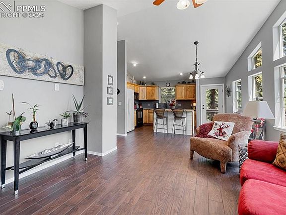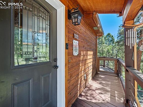 Don't miss your chance at this amazing Mountain Living dream home! Discover your Mountain Paradise with this stunning home featuring floor to ceiling windows that offer breathtaking views of the natural surroundings. Located less than an hour from downtown Colorado Springs, this home has the amazing opportunity to be a weekend getaway or a full time year-round residence. Located on a serene, well-mitigated .69 acres, you get to enjoy the convenience of a yard, but also enjoy the majestic views, access to trails off the back of the property, and peaceful privacy of being located in the trees. Main level living room boasts an abundance of natural light, bringing the feeling of nature inside. Modern kitchen features "live edge" granite counters, contemporary tile back-splash, and solid wood cabinets that feel perfectly at home in the mountains. Over-sized primary bedroom with large walk-in closet provides all the space you could possibly hope for in a bedroom. Attached bath with double vanity makes getting ready a breeze. Walk-out basement makes an ideal place to unwind after a day out and about. Wood burning stove provides plenty of warmth while watching it snow in the winter. Or hang out on the deck with your drink of choice to enjoy the sun rise and set over the mountains. Two additional bedrooms in the basement provide ample space for guests or kids with conveniently located full bath in the hallway right outside the door. Huge storage shed allows for extra storage for yard equipment, bikes, ski gear, or any other outdoor equipment a Colorado home might need. Fully fenced backyard gives lots of space for dogs or kids to play without fear of them running off. This home is truly a one of a kind, so don't miss your chance at the Colorado Dream. Schedule your showing today!