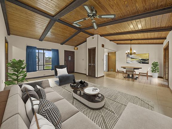Opportunity Knocks! Embrace the potential of this quaint Spanish-style ranch house, primed for your personal touch. Step into the inviting living room boasting a vaulted pine tongue and groove ceiling, exuding rustic charm. With 2 bedrooms, 2 baths, and a cozy Florida room accessed via French doors, envision your ideal living space. Enjoy the rear screened porch overlooking the vast backyard, complete with Bahama-style hurricane shutters for peace of mind. Situated on .23 acres with a fenced yard, featuring a 2-car garage, 10-year-old roof (aprox.) and city sewer connection, the canvas is set for your dream home masterpiece.