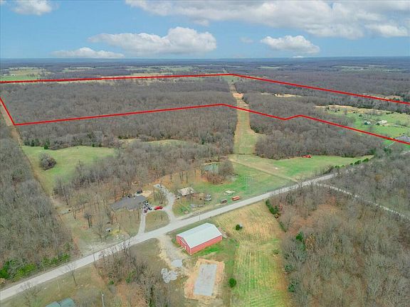 This property spans 117.10 acres and has no restrictions. It is partially fenced, with some cross fencing present. It features a wet weather creek and a pond. The creek runs through the land, providing natural water flow during the rainy seasons. Approximately 45-50 acres of the total area are dedicated to pastures, offering ample space for grazing or agricultural use. There is also enough woods for hunting. The combination of fenced areas, cross fencing and natural water source makes this property suitable for various farming and ranching activities. The property includes a large, old barn that has seen better days and is in need of repair but its weathered exterior tells a story of years gone by. With a little love and elbow grease would make a perfect added storage for hay or smaller animals. There is a second storage building that would make a great work shop area of extra garage or storage space. The home has front and back porch areas and features lovely original 1910 pine flooring, accents and beams, a kitchen/dining area, loft with built in storage area and living room with fireplace. For recreational time, a short distance away is Pomme de Terre lake for boating, camping, and swimming. Or you can enjoy Bennett Spring State Park for trout fishing, camping and nature trails. Just a few miles outside of the county seat. Deer, turkey and lots of other wildlife abound on the property. Hospitals and large shopping malls within an hour drive. Property is rural but just a short distance to paved road.