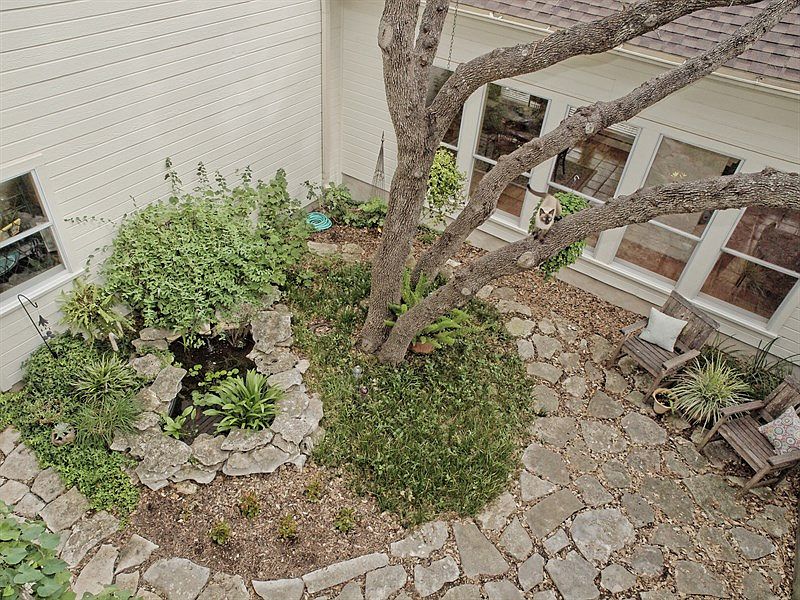 Incredible ATRIUM HOME/subdividable gated 5+wooded lot (gates in place for 2 approx 1-acr lot splits). Built around an approx 20x24 wooded ATRIUM/koi pond-feels like a treehouse! Photos don't do justice-see tour panoramas. Saltillo tile down; upstairs w/just-installed carpet! All BRs w/priv baths! Sitting area in lg master w/coffee deck & overlooks atrium. 2nd veg sink! Large workshop, garden! Pool ready w/patio pool bath! Room for RV garage, guest house! Near Reagan & Lake Gtwn!