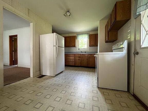 Cute and cozy 1 bedroom, 1 full bath with tub/shower combo, bright and sunny living room on front, eat-in kitchen with ample cabinet space, breezeway, 1 car attached garage, 0.35 acre lot, nice back yard area, washer and dryer in basement. Newer roof, vinyl replacement windows and more. Only access to basement is through the exterior door. This home was loved by the same owner since 1974. Great opportunity to own a home close to shopping, schools, gas stations, and so much more.