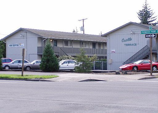 Nice and Affordable 1 Bedroom Apartment Great one bedroom, one bathroom apartment in the Castle Terrace Apartment Complex. This complex is located in convenient West Springfield with easy access to Lane Community College, The University of Oregon, Hospitals and more. Em-X and City bus stop adjacent to property. Amenities include garbage disposal, two on-site laundry facilities, fenced on-site play ground / picnic area, off street parking, large fenced common areas and more! Water, sewer, and garbage included in rent. No Pets, No Smoking, No Marijuana (medical or otherwise)