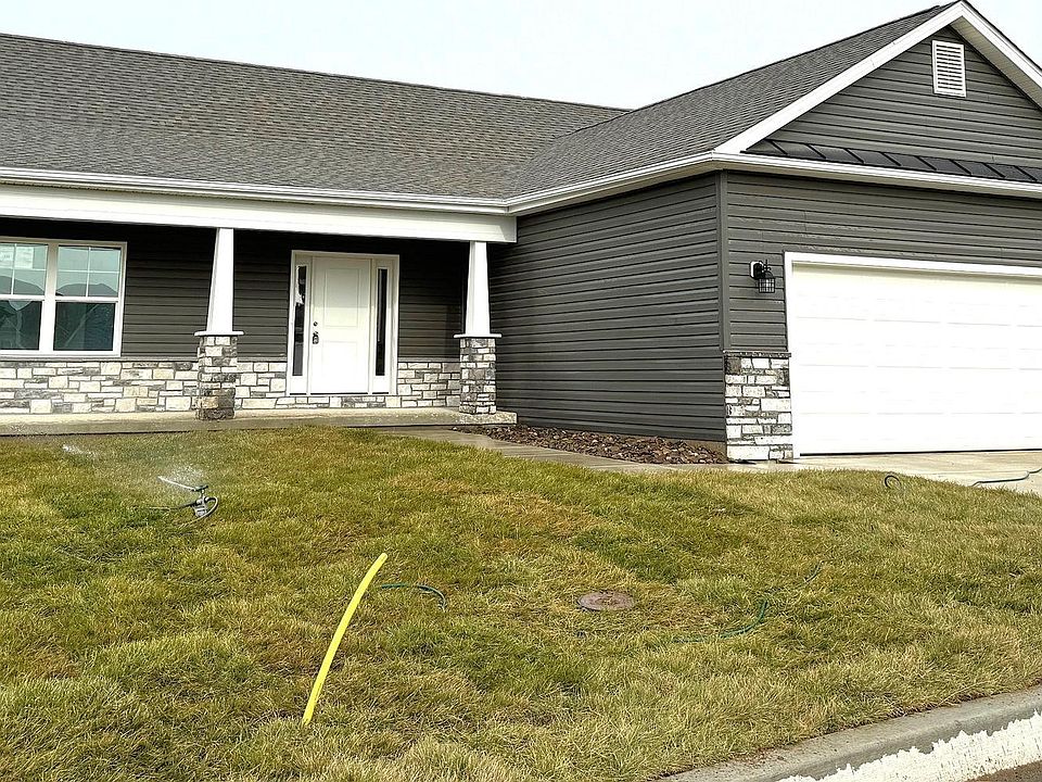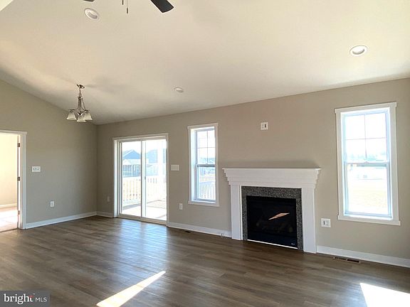 Under Construction..... 1440 sqft Ranch Home featuring Natural Gas heating, open floor plan design with vaulted ceiling and gas fireplace in Family Room, LVP Flooring throughout main living areas, Kitchen with island, granite countertops, and stainless steel appliances, spacious family room, and large primary bedroom with tray ceiling and full bath w/ tile shower, bench seat, & glass shower door.  The front of the home has large front porch and stone water table.  Home comes with 2-car garage with auto opener and concrete driveway.  Similar construction available to view