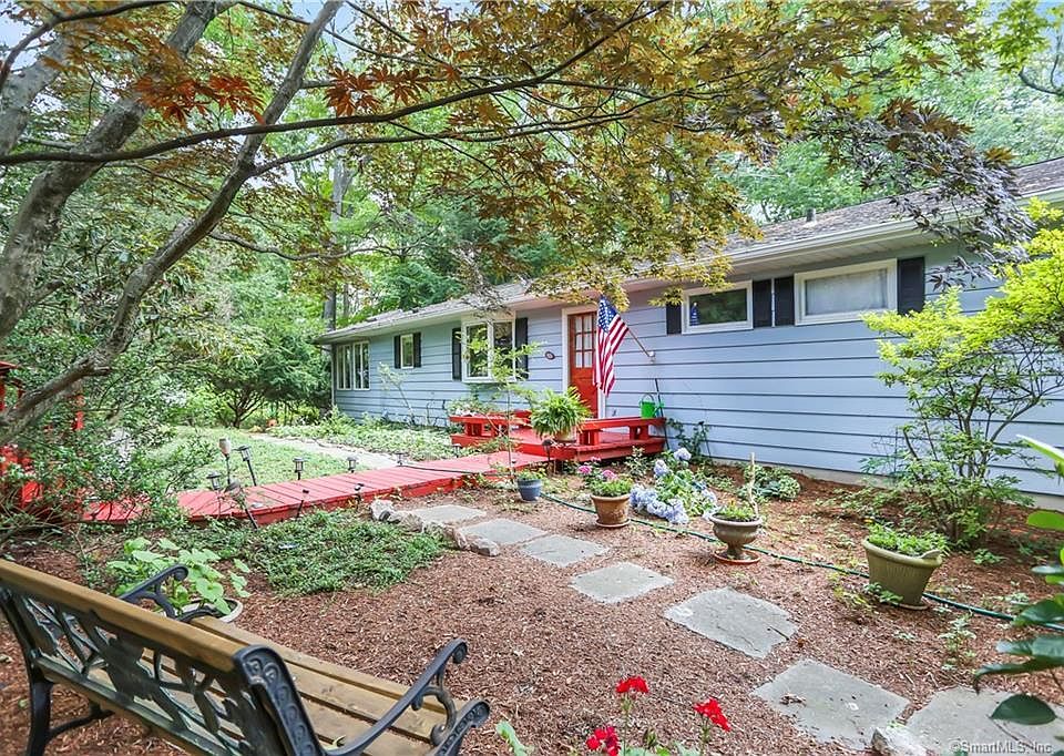 Nestled in one of the most desirable cul-de-sacs in lower North Stamford, this modern ranch has it all. Filled with character and light, this spacious home offers the space, layout and features you want for how we live today. Well equipped kitchen will delight the serious home chef with granite counters, double ovens, abundant custom cabinetry, breakfast bar, vaulted ceiling with skylights and windows galore. Host holiday parties in the lovely dining room and entertain in style in the generous sized living room with beautifully detailed fireplace, and sliders that lead to fabulous deck overlooking spectacular wooded property with lush gardens. Primary bedroom suite boasts double closets and luxurious, spa-like bath. First floor also has 2 additional bedrooms, another renovated bath and an office/den for all of your remote work needs. The walk-out lower level has a delightful family room with an additional fireplace, separate entrance and another bedroom, perfect for an in-law suite. Need extra storage? Lots of space in lower level. 2 car attached garage adds to the perfection. This secluded sanctuary is surrounded by nature and offers privacy and tranquility. Your very own private retreat. This sophisticated home is ready for you. Make your home ownership dreams a reality with this wonderful opportunity. It's all waiting for the savvy buyer! Retaining wall sold "as-is".