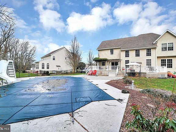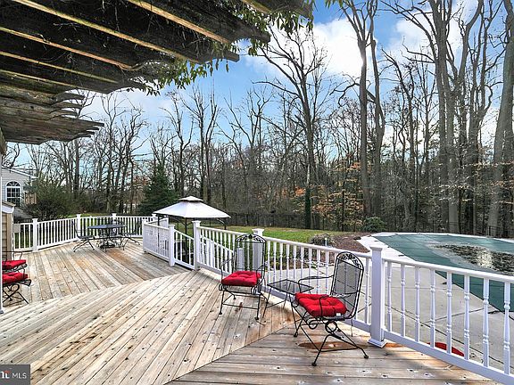 A two-story foyer greets you as you enter this home with a formal dining room with hardwood floors to the right and a cozy, carpeted living room to the left. Walk past the stairs and into the open 2-story family room with hardwood floors framing carpet flooring centered around a view of the woods behind the house and a gas fireplace. The the left of the open family room is a remodeled powder room and a bright study behind glass french doors. To the right is a breakfast area that continues into the large kitchen with lots of cabinet and counter top space! Off the kitchen is a laundry room, entry area, and access to the 2 car garage. Open the sliding glass doors to the amazing outdoor living space! A 2-tiered deck with a vine-covered pergola to offer shade, 2 areas on the deck that are reinforced for a hot tub and 220 outlets. The large pool with slide is a centerpiece of the backyard enclosed with metal fencing. Upstairs are 3 bedrooms, a full bath, and a overlook to the family room. The master bedroom, walk-in closet, and master bathroom are spacious and offer the surprise of a bonus room for extra privacy and relaxing!