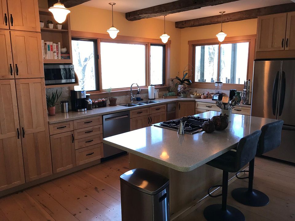 Available for sublease until July 31 or begin a one year lease at a possibly higher rate. Wonderful 3 bed/2.5 bath home with 50 mile views of the Blue Ridge Mountains! All wood flooring throughout, wood stove for aesthetics and alternate heat source, open spaces with huge island in the kitchen, screened porch and extensive decking with great views from all rooms. Lower level has additional space for home business and plenty of storage, 2 car garage and workshop space. Newer home in great condition on a private road at the very top of the mountain with privacy galore! Water included. Tenant pays utilities.