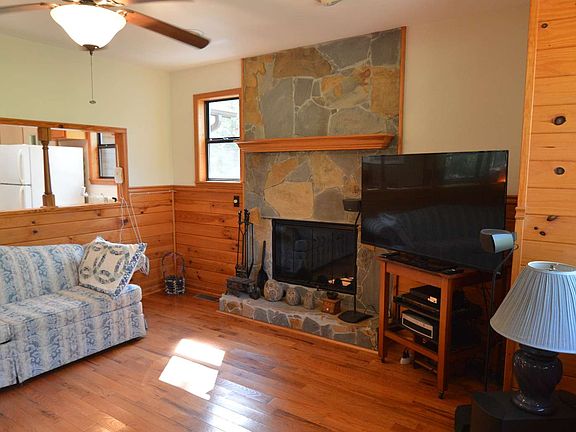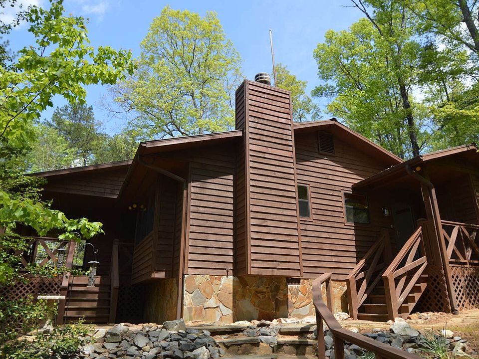 EASY ONE LEVEL LIVING PLUS PEACE & QUIET IN THE NORTH GA MOUNTAINS! Surrounded by tall beautiful hardwoods, this custom built 2 bedroom/ 2 bathroom cabin offers a private setting, an open floor plan, a blend of drywall & wood, wood floors, plenty of windows & sky lights creating a light atmosphere, large floor to ceiling stone fireplace, tons of storage, large pantry, spacious open air back deck, covered front porch, oversized detached 2 car carport, and conveniently located near Blairsville, Blue ridge & Murphy.