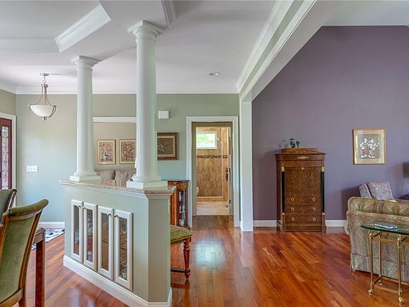 Stunning single-level custom home built in 2011! This beautiful sprawling ranch is better than new and it set on a beautifully landscaped .95 acre lot with woods behind it for exceptional privacy. The interior is immaculate throughout with a beautiful open floor plan, tall ceilings, and gorgeous high and finishes. There is an extra walk-up room on the second floor for additional future expansion that is not included in the advertised square footage as well as a full basement of which half is finished. There are simply too many features to list, but some include custom built-in dining room hutch, vaulted living room ceiling, cherry hardwood flooring, fireplace, granite tops, tray ceiling in master, walk-in closets, custom tiled showers, airbath tub, radiant heat in bathrooms, hydro-air heat with central A/C, central vac, alarm, main level laundry room with utility sink, mudroom area with custom bench and so much more! Must see!!