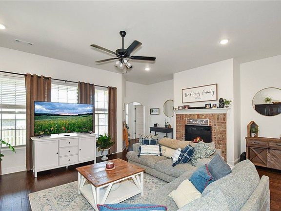 Welcome To Your Next Home! This Home Is Sure To Please With Four Spacious Bedrooms, Three Full Baths, 10-Foot Ceilings, Wide Open Living Area With Brick Fireplace, Large Kitchen, And A Formal Dining Room Filled With Natural Light. The Spacious, Open Kitchen Is Complete With A Beautiful Table Island, Perfect For Family Meals Or Friends To Gather Around When Entertaining. The Primary Suite It Tucked Neatly In The Back Of The Home And Offers An Excellent Primary Bath Setup That Offers A Tub, Tile Shower, Split Vanity, And Two Closets. The Larger Closet Connects Through To The Laundry/Utility (this closet is currently being used as a nursery...its that big!). This Large Floor Plan Also Features A Jack And Jill Bathroom That Connects 2 Of The Secondary Beds Plus A Bed Up Front With A Full Guest Bath. Nice Relaxing Back Patio And Fully Fenced Yard. Come See Why This Is The One!
