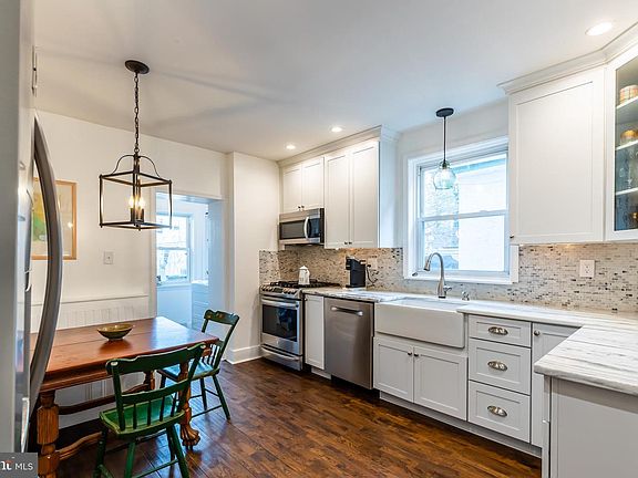 Colonial home located in Narberth Village with Spectacular Country Gourmet Eat-in Kitchen with a completely renovated home. Cute Front Yard with newer landscaping and Large Fenced in Front Porch with stone tiled flooring. Perfect for greeting friends, family, and neighbors on those Future Festive Narberth Nights! First Floor boasts custom wood Floors with LED Recessed lighting and newer windows. Fest your eyes on the Gourmet Country Kitchen, 42' inch White Shaker Cabinets, Marble Countertops and Backsplash, Farmhouse Sink, Stainless Steel LG Appliances with Multiple Pantry Cabinets and Beautifully Crafted built-in booth seating. The back-end of the First Floor leads to Laundry Area with a newer washer and dryer with a remodeled powder room with New Granite Vanity and Tile Flooring. The Pet-Friendly escape-proof backyard offers Cedar Wood Fenced in yard with room to entertain on New Cement patio. 2nd Floor offers more custom wood floors and newer windows with plenty of natural light. Large Master Bedroom offers custom closets, newer ceiling fan with Bay Windows. Upper Bath has newer vanity and tile with Bathtub/ Shower. Basement has a 2nd Washer and Large Custom Closet. Additional upgrades include a Brand New Central Air Splits, Newer Heater, Back-up Heater and Added Supplemental Electric Box, Newer Roof & Door. Let's not forget that this property is in Unrivaled Lower Merion Township and School District is in a choice High School Area (Lower Merion High School /Harriton High School). Close to Whole Foods and Wynnewood Shopping Center and walking distance to Narberth Village & Narberth Park and Playground.