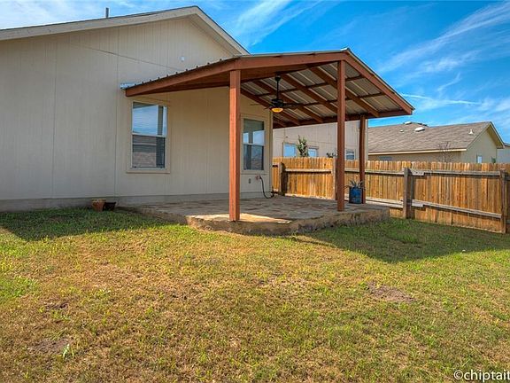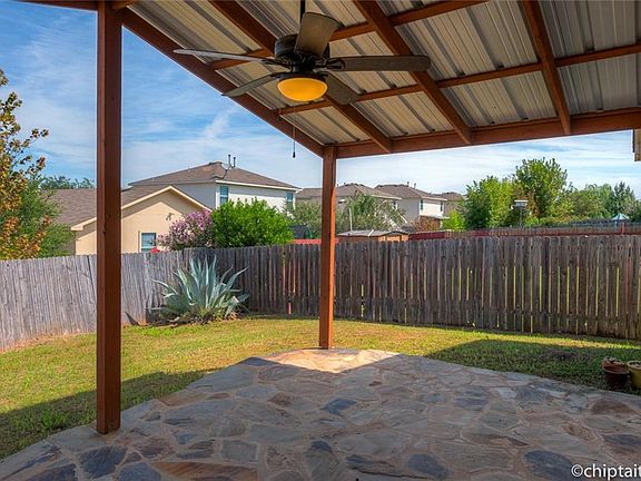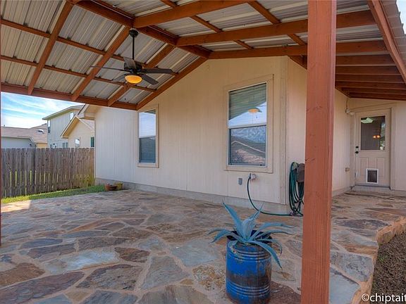 Clean, move in ready, with a real WOW feature- This one has a BEAUTIFUL flagstone patio and walkway, with a high, metal roof and exposed beams that MAKES the backyard! New carpet in the bedrooms, laminate in living, and hard tile in the eat-in kitchen, hallways and bathrooms. Nice ceiling fans in all rooms, faux wood blinds throughout. Stainless steel appliances include side by side fridge with door dispenser, 5 burner gas stove, built -in mircowave, disposal, water softener, washer, dryer. HOA Park,pool