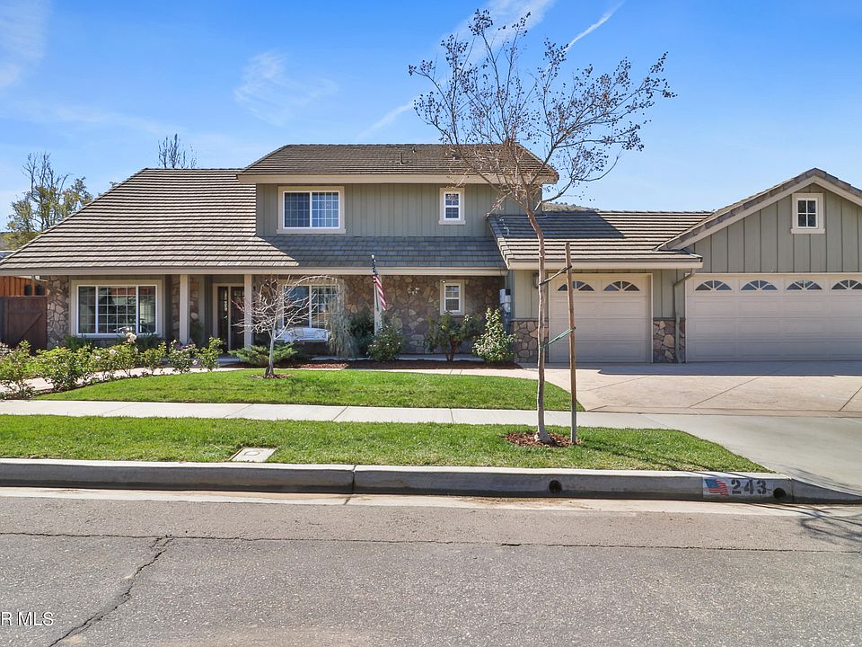Location! Location! Location! 243 Longbranch Rd is located in Simi Valley on one of the most desirable streets in the highly sought after Country Lane neighborhood. This well-maintained, FULLY REMODELED Equestrian home is absolutely gorgeous, with Breathtaking Views! Driving up to this home, you will fall in love with the attention to detail and its craftsman style charm. The downstairs offers a large living room with bay window, crown molding, surround sound speakers and custom cased accents. The Living Room flows into a formal dining room which leads to an amazing fully remodeled kitchen with craftsman style cabinetry, soapstone countertops, stainless steel Viking & Bosch appliances, and farmhouse sink. The kitchen opens to a spacious family room with a high end energy efficient gas fireplace. The lower floor also offers a downstairs bedroom and completely remodeled full bathroom. The custom wrought iron staircase leads upstairs to a bonus loft area with vaulted ceiling, 3 additional bedrooms, and another 5-piece remodeled bathroom. The master bedroom features vaulted ceilings, opulent 5-piece master bathroom w/river rock shower & spa tub, and custom walk-in closet. The expansive backyard is truly an Entertainers Dream, featuring a panoramic mountain view, custom patio cover, salt water Pebble Tec pool and spa, free standing pergola over built-in bbq, custom hardscape & softscape, 2 stall barn with tack room and arena, full size RV parking, putting green, mature fruit trees and much, much more! Some additional features include paid solar system, state of the art HVAC system with clean air technology and Comfortlink Thermostat, updated concrete shingle roof, hardwood floors, built in closets, ceiling fans, recessed lighting, newer double pane windows, NEW 200 amp panel, new PEX plumbing throughout, tankless water heater, Solar tubes & variable speed pool pump. New exterior acrylic stucco, Cat 5 wiring, new stamped concrete driveway & walkway, newly updated exterior stone finishes, 3 car garage with acrylic flooring & new RV gates. This well-cared-for home has direct access to two horse arenas and is walking distance to park.