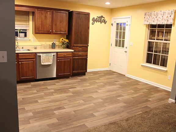 Step away from work and enjoy a neighborhood evening in Hensley Estates. This beautiful 3 bedroom 2 full bath ranch house, features an open kitchen to living room floor plan. Kitchen is equipped with stainless steel appliances that will remain. New flooring was also recently installed in the kitchen and both bathrooms. Updates in bathrooms include shower heads, vanity, and trim. Each of the secondary bedrooms have ''floating'' bunk beds for the kids, with play or school areas underneath. The primary bedroom is very spacious with a full bathroom and walk-in closet. Up front, a 2 car attached garage will provide easy access to your vehicles. Work bench, shelving, and attic hatch in the garage is convenient for storage. A large portion of the attic has wood flooring to stow extra belongings. Out back you'll find a comfortable yard with patio area, custom-built bar, and fire pit. Storage building, playground, and pool deck is also included. Pool was removed, however, a new pool pump and filter will remain. The home's HVAC system has been updated with a new A-Coil, blower motor, and capacitor in the past two years. Seller would like to provide the new owners of this lovely home with a 1 year America's Preferred Home Warranty.