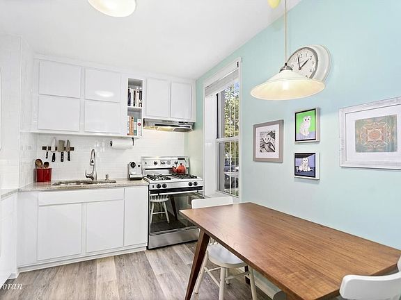 This gorgeous 1 bedroom co-op in Windsor Terrace is large, renovated and airy and was just featured in the New York Times "On the Market" column. Apartment features include: hardwood floors, over-sized living room with separate dining area, windowed eat in kitchen with great storage and counter space, gut renovated windowed bathroom, king sized bedroom with double exposures, and five generous closets throughout the apartment. Upgrades include built in shelving, wainscoting, designer wallpaper, custom lighting, ceiling fan with remote control and custom blinds throughout. Maintenance includes all utilities, inclusive of cable/internet. The building has a live in super, laundry room, courtyard, bike room, rec room and storage, and parking (currently a wait-list); it is a wonderful well-kept co-op that is 100% owner occupied. Windsor Terrace is located across from Greenwood Cemetery and near Prospect Park. The F/G trains are right around the corner from the apartment as are a myriad of shops/restaurants including Steeplechase Coffee, Jaya Yoga and Hamilton's. The co-op allows cats, sorry no dogs.