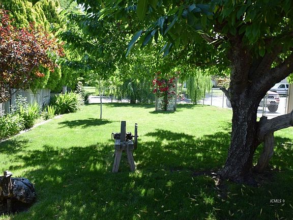 Georgeous yard! Enter into this 3 BR/ 2 BA home by passing by a beauifully landscaped yard with peach, Apple, and cherry trees, and flower beds filled to the rim. Auto sprinklers. 2 car garage or workshop, what ever suits your fancy. All windows are dual pane. Bonus room off the back of the house. Lots of closets and a remodeled master bed and bathroom, with custom wood work throughout.
