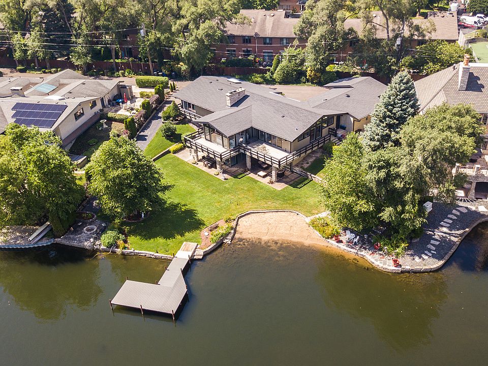 Stunning, Mid-Century Modern, hillside ranch home located on the pristine waters of beautiful Murphy Lake. This extraordinary hidden lake is an amazing find and will take your breath away. Impress your family and friends on this secluded 14.5-acre private lake with 32 homes located just 15 miles from downtown Chicago and just minutes to O'Hare, Metra, top rated schools and expressways. This custom-built home is perfectly centered on the west side of the lake with expansive views in all directions. The lot is one of the largest 120 x 250 with a significant amount of land out of the water allowing for an impressively large, picturesque yard. Enjoy the morning sunrise while sipping your coffee and cool evenings with the sun glistening off the water. This secluded setting is accessible only by a "newly paved" private driveway. The home has over 5,000 square feet of living space with a walkout lower level on lake side, a 3-car attached garage, a wraparound balcony across the entire back of the home overlooking the yard and offering remarkable lake views. How about relaxing on your own private beach or jumping in the cool water off your personal pier? Enjoy your lake year-round swimming, boating, fishing and ice skating. First time this home is being offered in decades. Architectural shingle roof looks great and is approximately 13 years new. Newer zoned furnaces and central air units. Check recent sales on the lake: 240 N. Dee sold (off market) in March 2022 for $2.1M. 208 N. Dee Rd sold $1M for land only. If you want something special that cannot be duplicated, then come and see this beautiful home and this amazing lake. Once per year only association dues of $600.