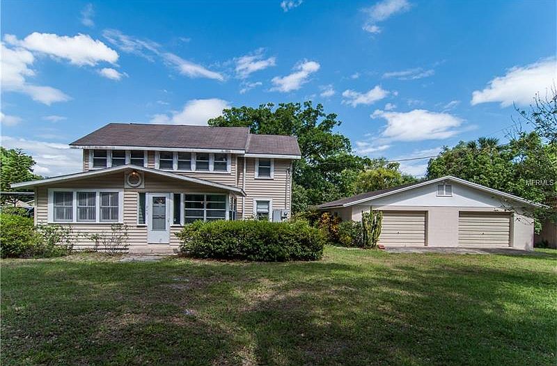 AWC - Taking Backup Offers Quaint Florida Style home, 3 bedroom 2 bath with hard wood floors in all bedrooms located on the second floor. Six lots equaling .53 Acre, is zoned for Professional Suites. The 1,100+ Sq. Ft. solid block garage detached has a full bath and separate service for utilities. Great place for rental income for a small business or warehouse space. Close to Lake Mary Arts Center, 4th Street, shops, bars and restaurants.