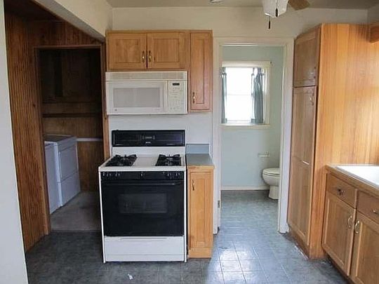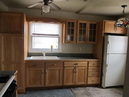 Cozy 1 bedroom home with large living room with cathedral wood ceilings that make it very nice. Has 1 bedroom with large closet, bathroom with large shower, nice kitchen cabinets with open window area looking into the living room. Great starter home on large lot with fenced in back yard. Includes newer washer and dryer and 2 sheds. Nice setting not too far from town and near Wiggins Lake.