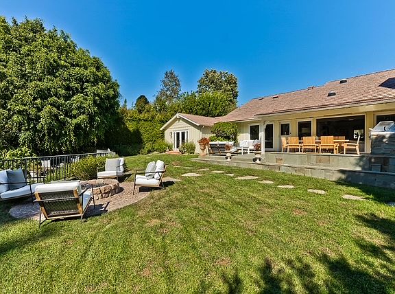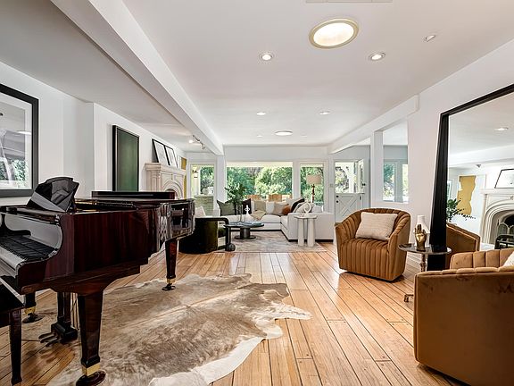 The bright kitchen is appointed with a charming breakfast nook and top-of-the-line Viking appliances, perfect for morning gatherings or casual meals. Plenty of storage and walk-in pantry make it a chef's delight. Skylights and large windows bathe the interiors in natural light, creating a bright, airy ambiance throughout.
