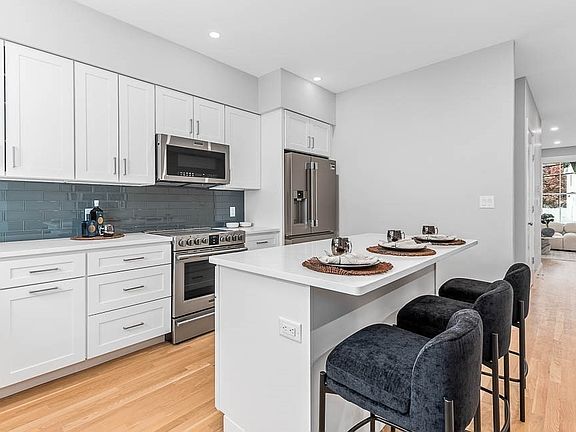 Last unit available at Neponset Landing. Prime opportunity to own a thoughtfully designed new construction townhouse in Boston's historic southernmost corner, Readville home of Camp Meigs. Open concept kitchen/dining/living first floor with quartz countertops, ss appliances, 9 foot ceilings plus plenty of cabinet & closet space. The 2nd floor has a private roof deck atop the units 1 car attached garage ready to receive your EV hook-up. Three bedrooms and a full bath with soaking tub and spacious laundry closet complete the 2nd level. Head upstairs for R&R in your private primary with on-suite bath featuring double vanity and a large walk-in closet. Each floor is individually climate controlled, all units have a 2nd deeded off-street parking spot plus ample basement square footage ready for finishing. Close to shops, restaurants, active and passive recreation. Commuter friendly to 2 MBTA Commuter Rail lines & major routes.