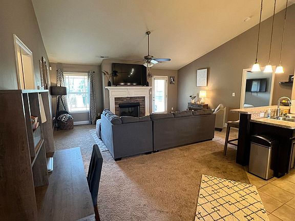 - Features: Carpet, Ceiling Fan(s), Fireplace, Vaulted Ceiling(s)