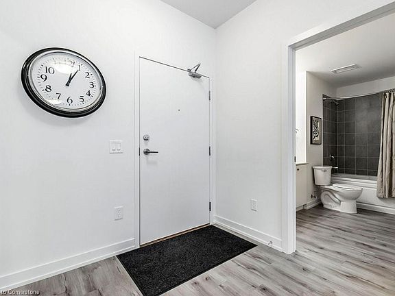 Discover this beautiful one-bedroom condo in the heart of Waterloo, where modern style meets everyday comfort. The open-concept living space is perfect for hosting guests, with expansive windows that flood the room with natural light, creating a bright and airy atmosphere. The upgraded kitchen is a chef’s dream, featuring sleek stainless steel appliances, luxurious quartz countertops, modern backsplash and plenty of counter space, making cooking and entertaining a breeze. With tons of upgrades, this unit is designed with high-end finishes and attention to detail. Step outside to the spacious balcony, which overlooks a peaceful courtyard — the ideal spot for relaxing and enjoying warm summer evenings. The bedroom is both cozy and functional, featuring a large walk-in closet for all your storage needs. The adjoining bathroom is equally impressive, with a generous soaker tub and ample counter space for added convenience. This condo offers the perfect combination of luxury, convenience, and style, making it an ideal place to call home in Waterloo. Close to restaurants, shopping, Conestoga Mall, St. Jacobs Farmers Market, and Rim Park and much more. Building amenities include Gym, Party Room, Pet Wash Area, Business Centre (WiFi), Outdoor Patio, Security System, Bike Storage, BBQ Permitted, Dining Room, Catering Kitchen, Hot Tub and more.
