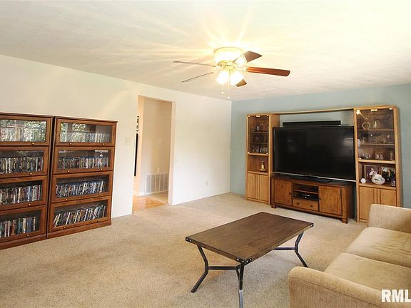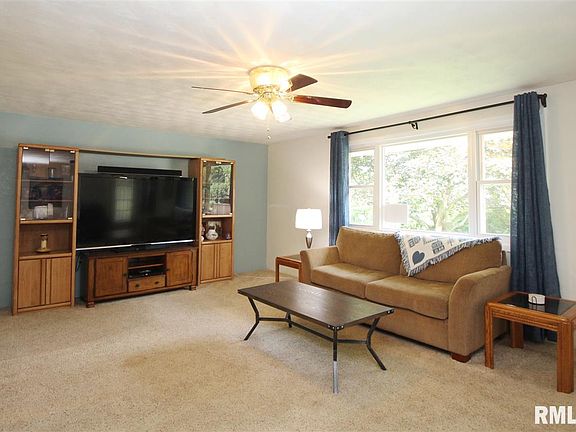 Incredible find-country living with public utilities & city conveniences! Charming 2-3 bedroom, 2 bathroom brick ranch on 2.87 acres with wooded privacy behind. Spacious living room features 9x4 walk-in closet plus newer carpet & beautiful front door. Nice bright eat-in kitchen includes island with tile top, stainless steel appliances, tile backsplash and slider to 4 season sunroom. Jetted tub in updated main floor bathroom. Both bedrooms have lighted double closets. Large lower level family room. Den with adjoining, finished storage room could be used as additional bedroom. New lower level bathroom with corner shower. Fully applianced plus premium home warranty included! Exterior offers 24x13 side patio, 14x14 back patio, 16x12 shed with roll up door, 7x5 vinyl shed and a firepit. Extra gravel parking area. Shingles, gutters & windows approx. 2009. Amana central air & HE furnace 1999. Attached garage offers pull down stairs to attic storage. Handy location near Fondulac Shopping Plaza