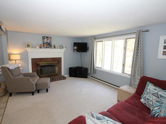 Not to be missed! Three bedroom raised ranch offers open living room with fireplace and large window overlooking front yard. Kitchen with updated stainless steel appliances. Dining area with direct door to back composite deck. Three bedrooms and full bath. Daylight basement with large wood stove and potential! One car garage , shed, and more on this private 2.3 acre lot!