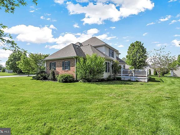 R-10940 Beautiful home in The Orchards with brick on 3 sides and master on the first floor is waiting for you. This home has many features and has been impeccably maintained. It is located on a corner lot and has a private back yard with a large deck to enjoy the seasons. The landscaping is new and adds to the beauty. There is a sprinkler system on a private well to take care of the beautiful landscaping. Inside there are 5 large bedrooms with the master located on the first floor with a spacious walk in closet and a master bath with 2 separate vanities, whirlpool tub and separate shower. The kitchen features granite and black stainless appliances. There is also a refrigerator in the garage that will stay. The hvac system is less than 3 years old. The laundry room is sunny with a window and spacious with the washer and dryer staying. All curtains and blinds will stay. The upstairs bedrooms are all spacious. Schedule your tour today of this home located in the Caesar Rodney School district and ready for new owners.