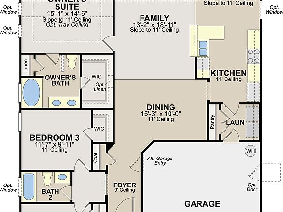 Single-story home with three bedrooms, two full baths, and 11' vaulted ceilings. Outside, there is a full front porch and a large patio off the back with a gorgeous, peaceful pond view! An irrigation system is included for easy yard maintenance. Inside, additional low-E, high impact windows are throughout for natural light. High-end laminate flooring beautifully gleams through the main areas, with plush 8 lb. carpet in the bedrooms. The owner's suite is complete with a vaulted ceiling, walk-in closet, and bathroom. The bath includes the popular walk-in shower option, raised vanity with dual sinks, and linen closet. The dining, family, and breakfast areas are open to the trendy kitchen. Stylish, gray 42" upper cabinetry with crown molding is accented with a white tile backsplash, and flowing perfectly with a high-end quartz countertop. Stainless steel appliances add a nice finishing touch. Other selections include additional attic storage, upgraded interior paint, additional recessed can lighting in select areas, and more.