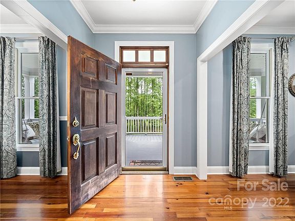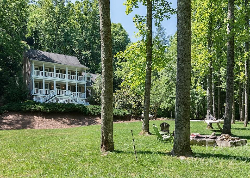 Welcome to the River House, a stately home situated on 5.3 acres along the beautiful French Broad River. This two-story home is a remarkable find, with plenty of outdoor space on a woodsy, level lot only 5 minutes from Pisgah National Forest. Enjoy countless evenings under the stars by the outdoor fire pit, or enjoy nature's peace and quiet from the spacious covered patios, deck, and balconies. Entertaining is a breeze with two full kitchens equipped with stainless steel appliances, generous counter-space, and breakfast bars. Notable features throughout the home include heart pine floors, custom built-ins, double crown molding, and recessed lighting. The primary suite has a large, walk-in closet w/ built-ins, a bathroom with a jacuzzi tub, walk-in shower, & dual sinks. There are even two laundry rooms, offering plenty of convenience for guests. Only 10 minutes from downtown Brevard and 0.5 mile from the future Ecusta Trail. Air Purifiers are for a family members medical condition.