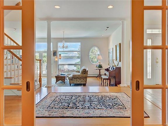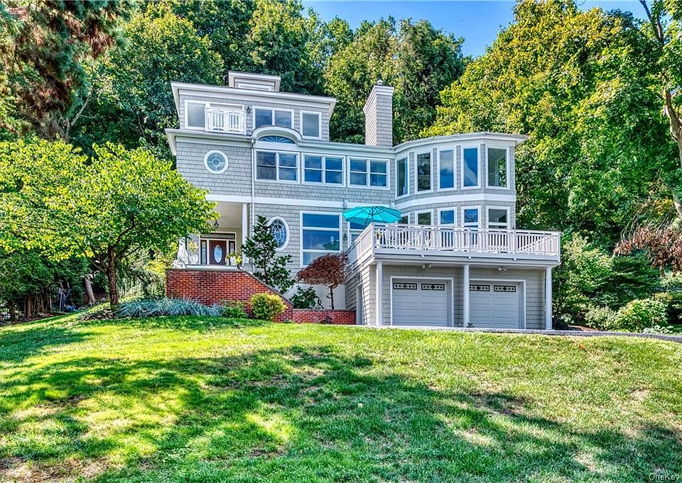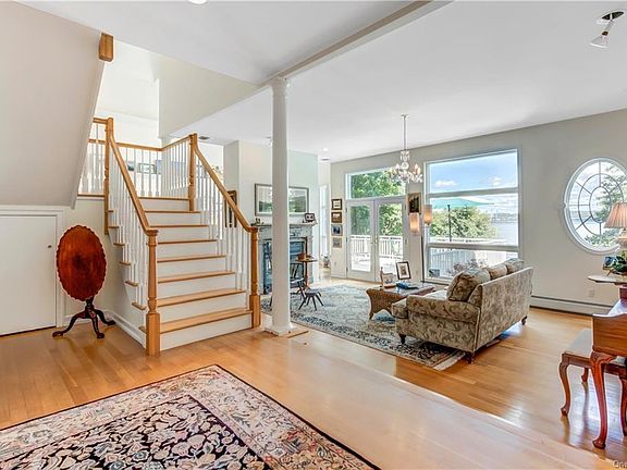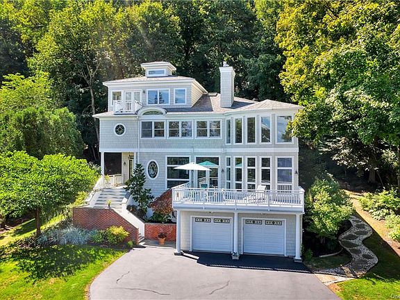 Majestically sited, well designed Hudson River View Queen Anne Victorian masterpiece. Gracious entry with stunning staircase and parlor with fireplace welcome you home. Dramatic great room with a soaring 26' volume ceiling and wall of windows optimizing the private setting leads to a fabulous deck overlooking the Hudson. Magnificent chef's granite kitchen with up-market appliances offers a separate prep area. Formal dining room opens to a spacious screened-in porch and flagstone terrace. Upstairs, the owner's suite is a safe haven, large river view bedroom, fireplace, luxe en-suite bath and two walk-in closets. Up a spiral stair, a spectacular commanding loft home office with a sea captain's deck. Separate suite offers two bedrooms and en-suite bath. Another bedroom up the hall has two large closets, one is plumbed for a future bathroom. The lower level offers a den or bedroom, full bath and two car garage. Deeded Hudson access. Only 14 miles from Manhattan, but a world away. You'll love it.