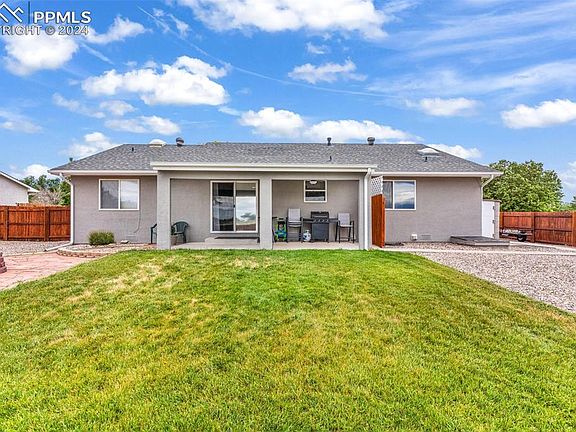 Looking for a well taken care of rancher with gorgeous views?? Come look at this home. It is a 3 bed 2 bath rancher that is fully landscaped and FABULOUS views of Pikes Peak. The back yard is like your own little escape. The covered back patio offers months of outside enjoyment and the yard is fully fenced with a privacy covering along the fence line. There is a fire pit and lush trees and shrubs. The exterior of the home was just recently painted. There is central air conditioning and the furnace is newer and appliances are about 1 year old. The garage has an extra wide enclosed space that is perfect for storage. It is about 20x 6