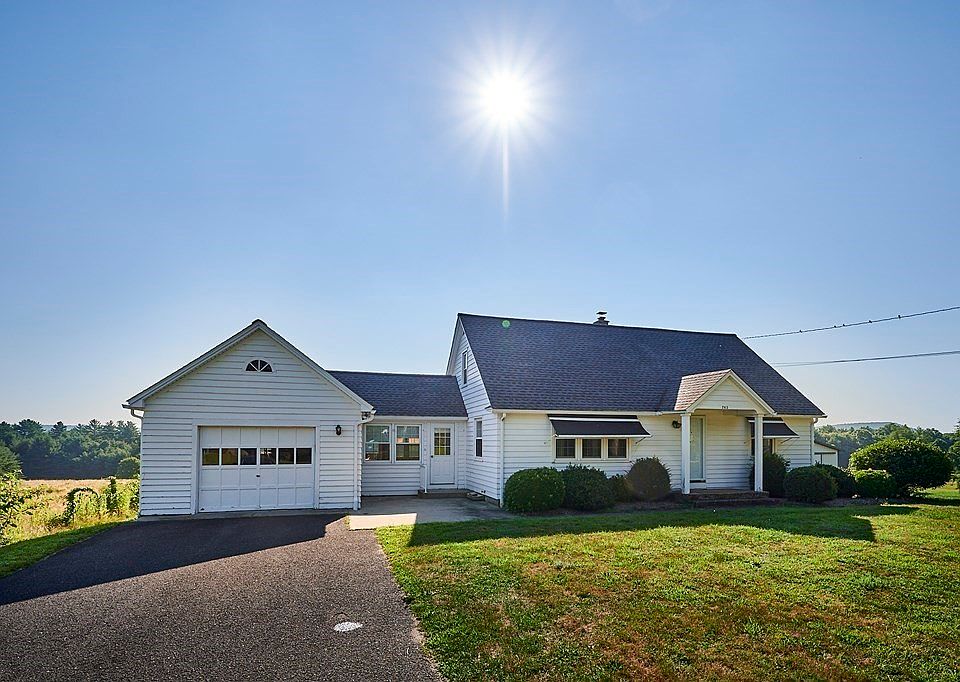 Charming Cape first time on the market! This one owner home has been lovingly maintained situated on a 5+ acre lot with lovely rear views. This three bedroom 1 1/2bath home has many original features but enjoys modern updates, newer roof & windows, furnace, central air, new hot water tank & new oil tank. First level with kitchen and dining area, spacious living room with built in and gleaming hardwood floor, full bath & two bedrooms. The second level, bedroom and half bath.The bright & sunny breezeway exits to a rear patio, the perfect place to enjoy the scenic setting. The level yard provides ample space for play or future gardens. Huge accessory building for workshop or storage. New septic to be installed prior to closing. A warm welcoming home in a great location! Open house Saturday Aug 13 12p to 2pm.