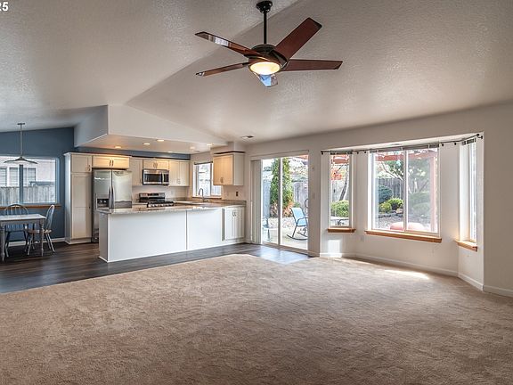 BOM at no fault of the property. Buyer lost financing. This updated kitchen features granite countertops, new vinyl flooring, and comes equipped with a refrigerator, gas stove, and dishwasher. The living area boasts vaulted ceilings while new carpet adds comfort throughout the home. The primary bedroom includes a spacious walk-in closet and a full bath for added convenience. Each of the additional bedrooms offer charming bay windows with built-in seating and storage. The low-maintence front yard is landscaped with turf, while the backyard features decorative rock with a tool shed.A one-car garage provides secure parking and extra storage space.